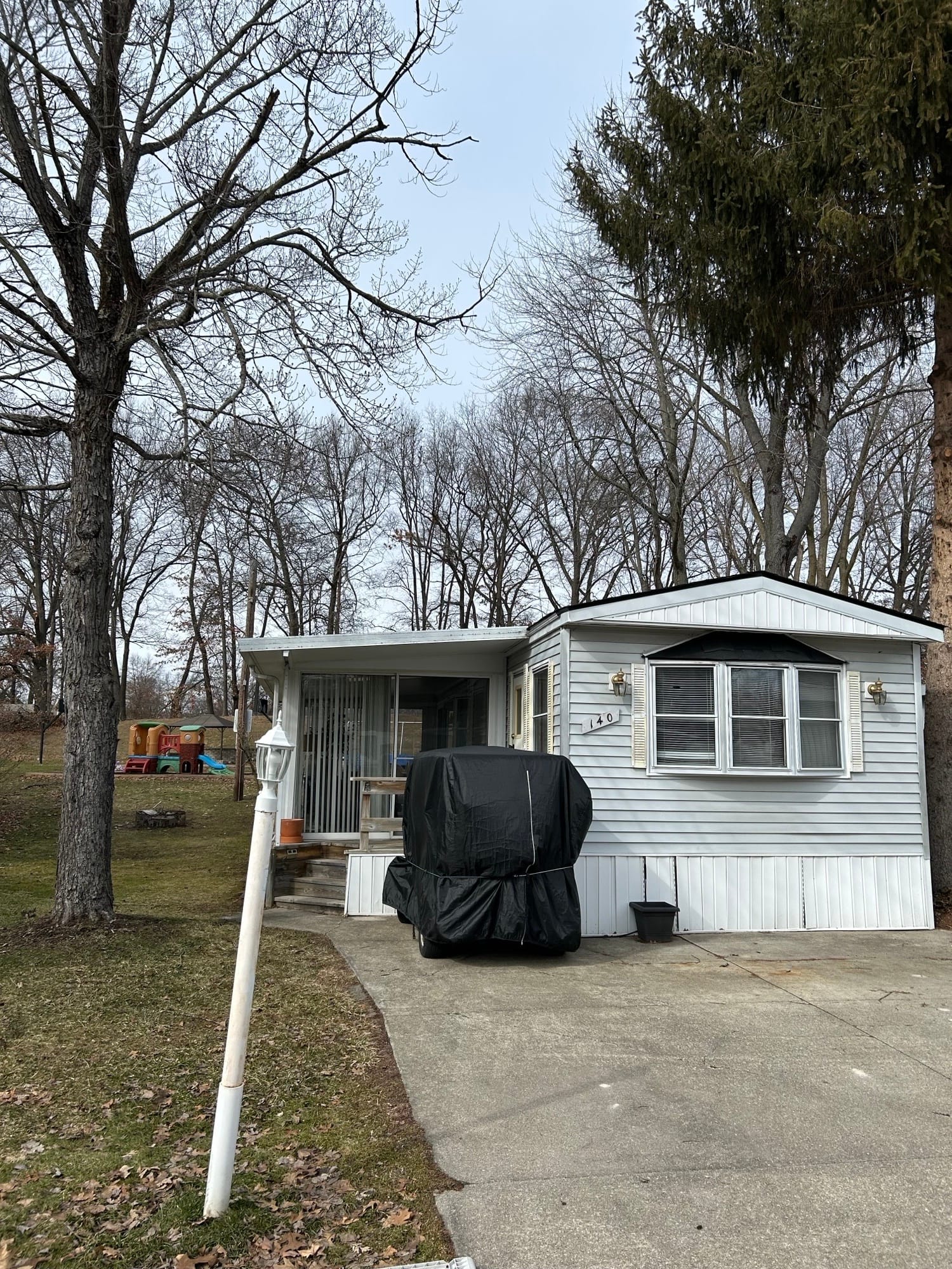 #140 Park Model with back deck. Great back yard. New Roof and flooring $119,900